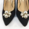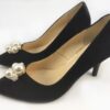 Dámska luxusná lodička Kožený zvršok + kožená vnútorná stielka Čierna nubuková koža, perlové ozdoby Opätok výška 75 mm, náhradné pätníky v balení TOP PRODUKT