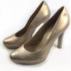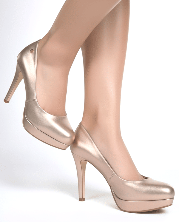 Dámska lodička Kožený zvršok + kožená vnútorná stielka Zlatá koža Opätok výška 115 mm