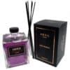 Sklenený flakón, fialová farba, tyčinky v balení