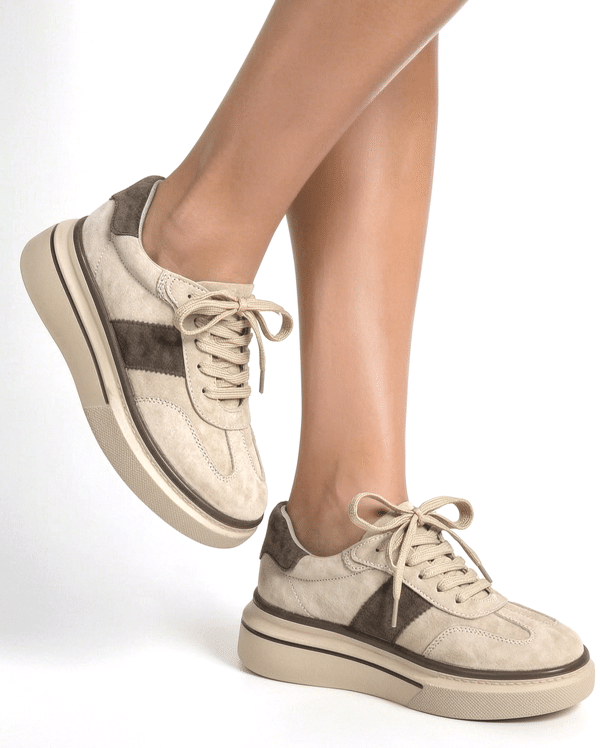 Palita – ľahká kožená teniska na šnúrovanie na platforme – béžovo/hnedá