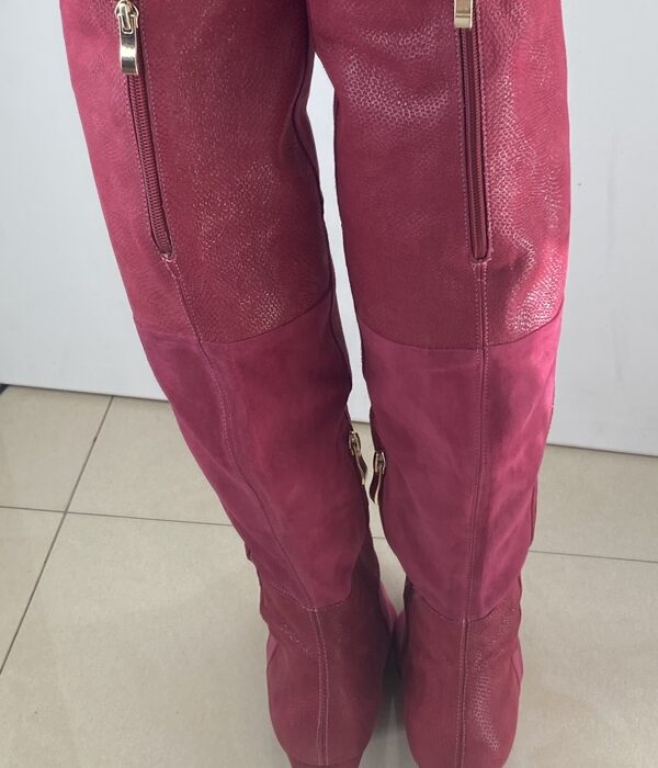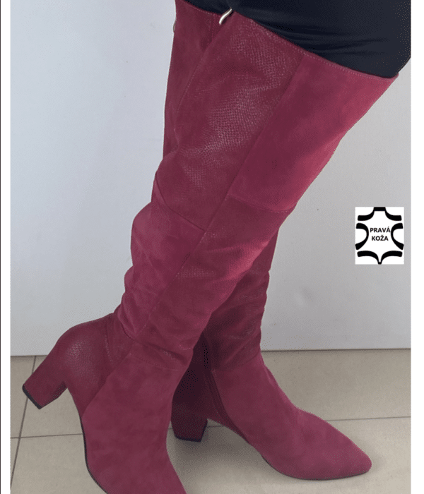 106 A DMS koža burgundská červená + hadina Luxusná vysoká čižma
