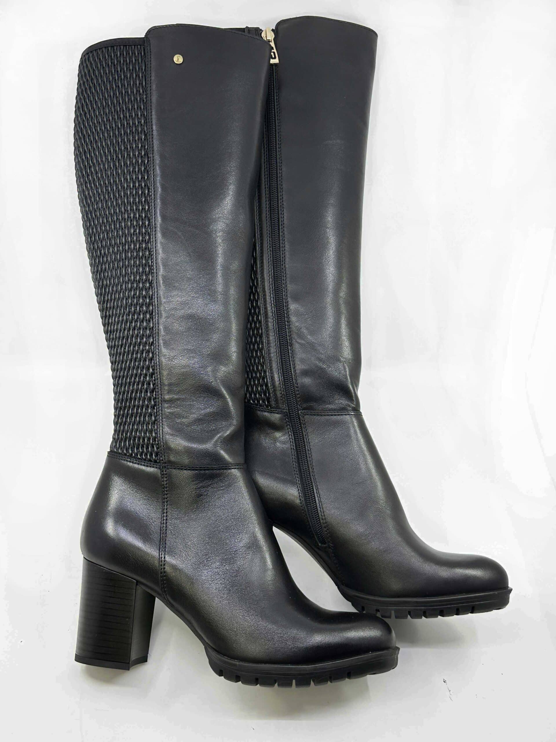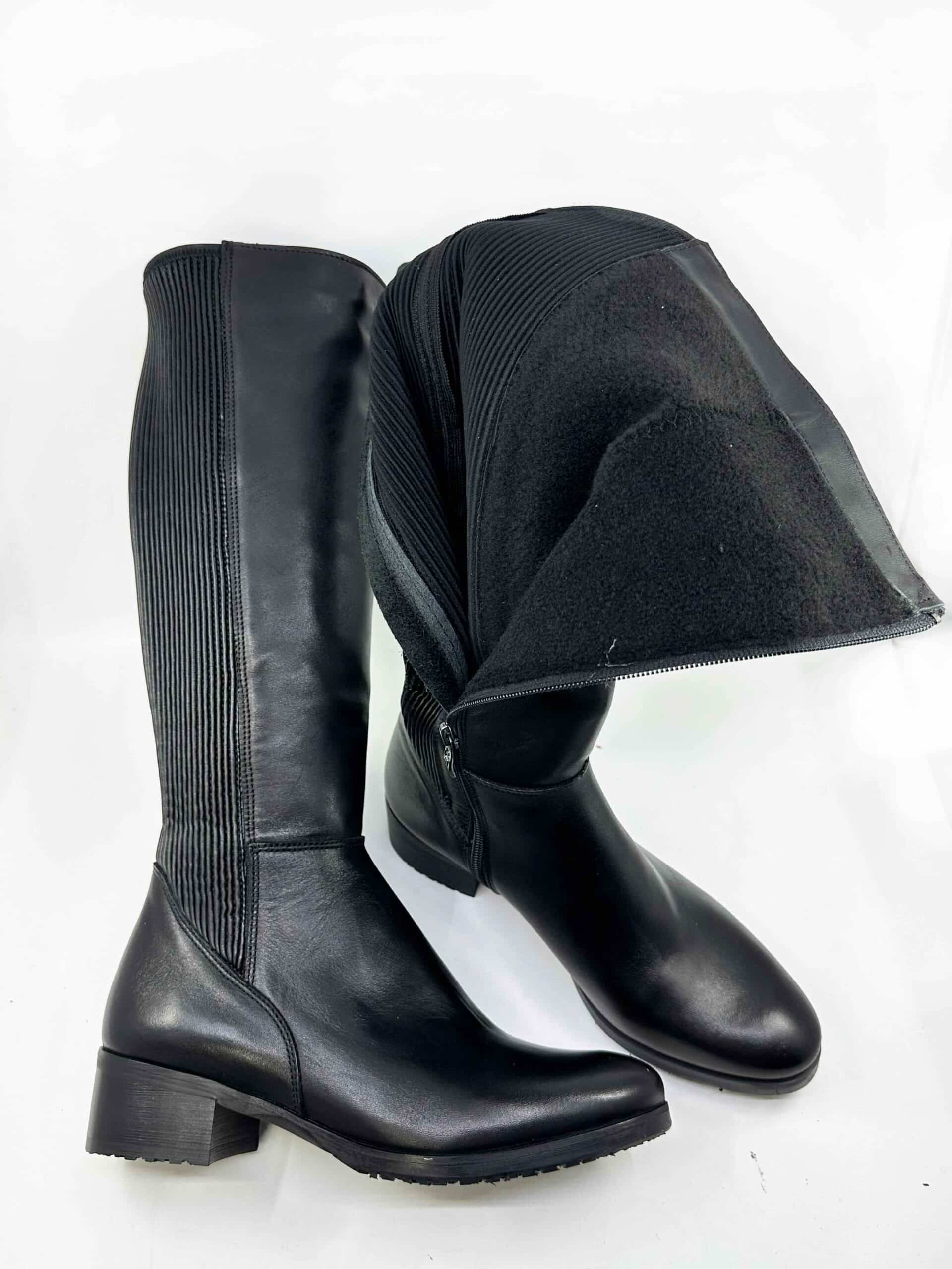 množstvo SM Melania vysoká čierna zateplená kožená čižma s elastickým lýtkom