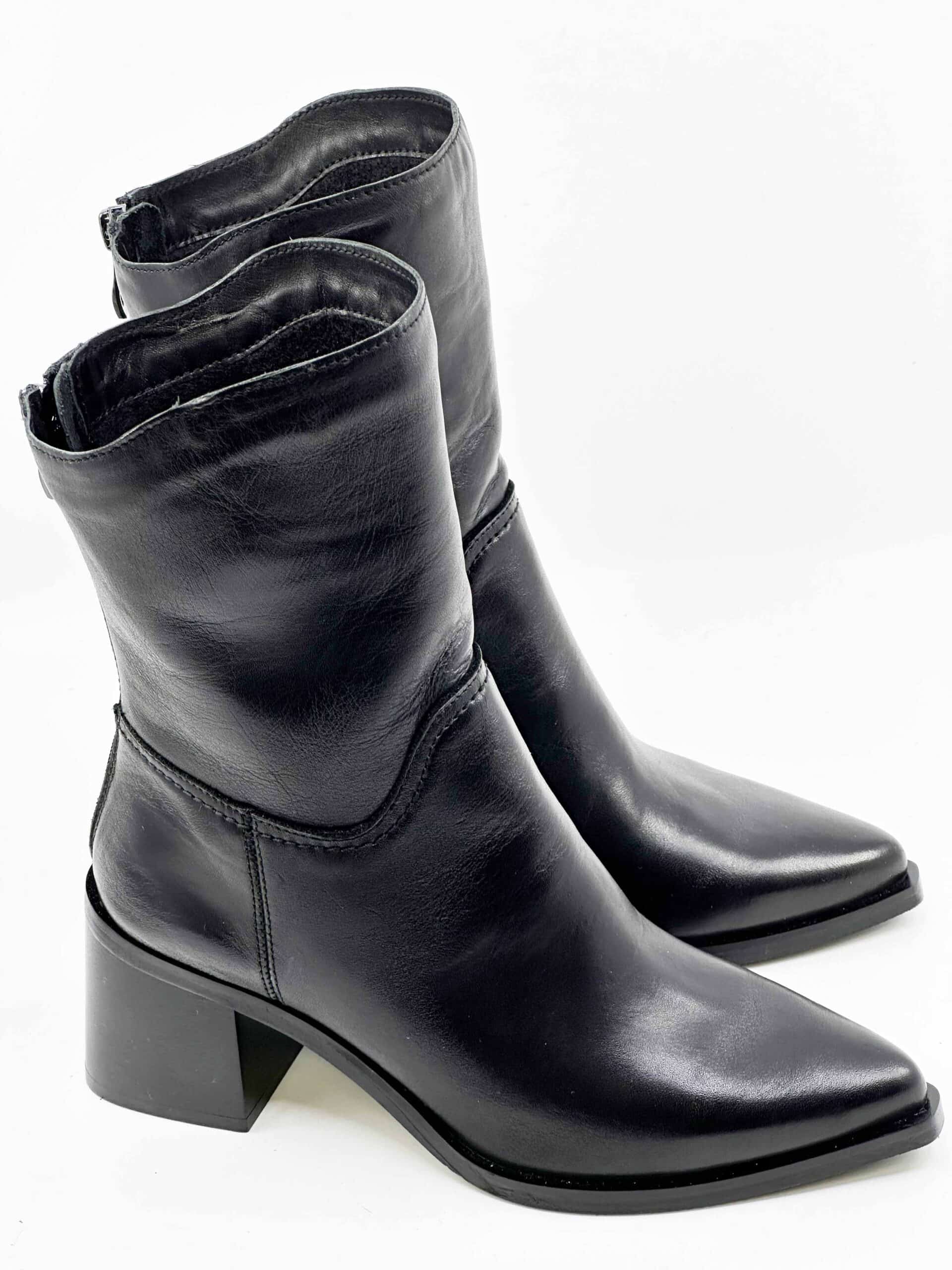 SIM čierna kožená zateplená čižma na opätku
